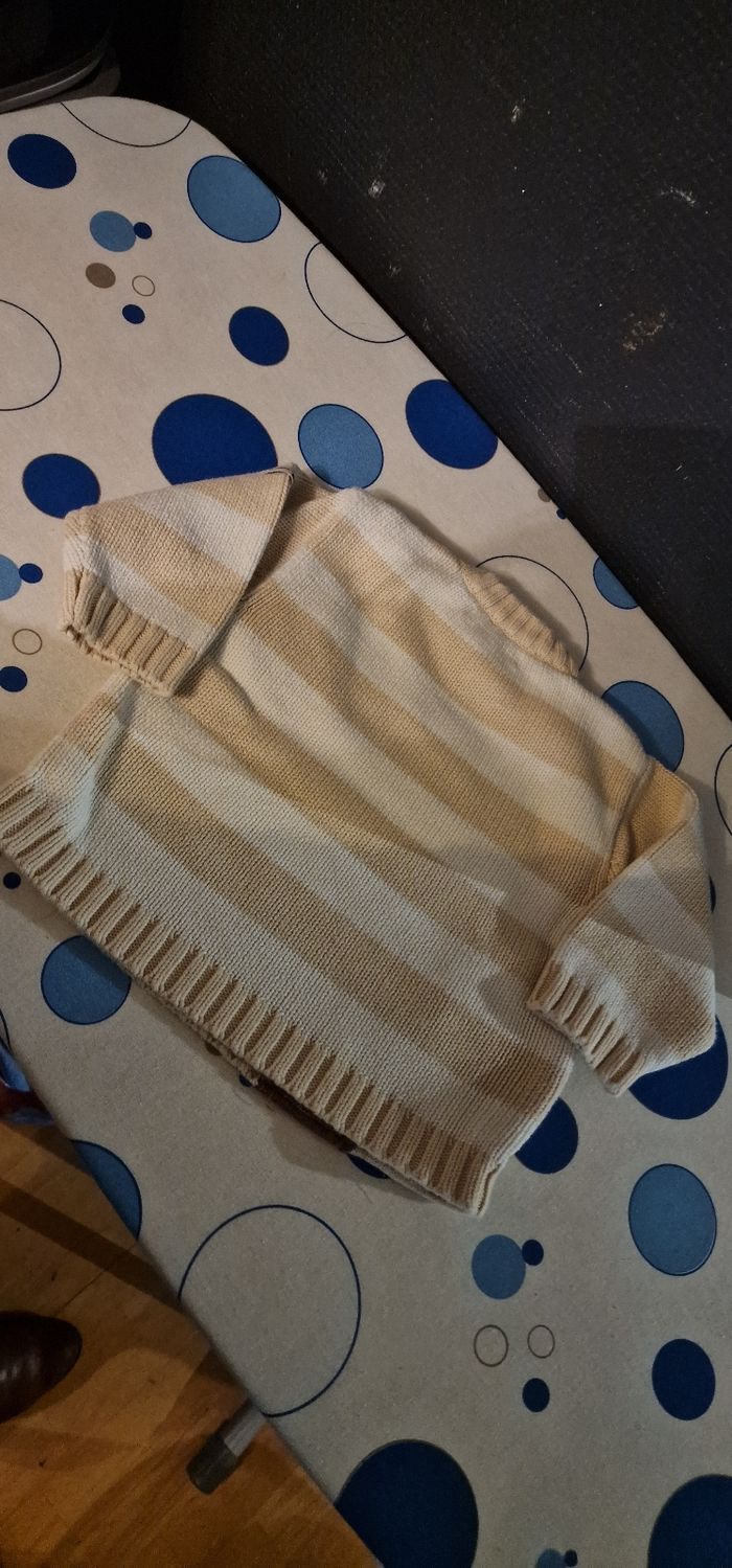 Pull garçon de taille 6mois beige et blanc marque petit kimbaloo très bonne état