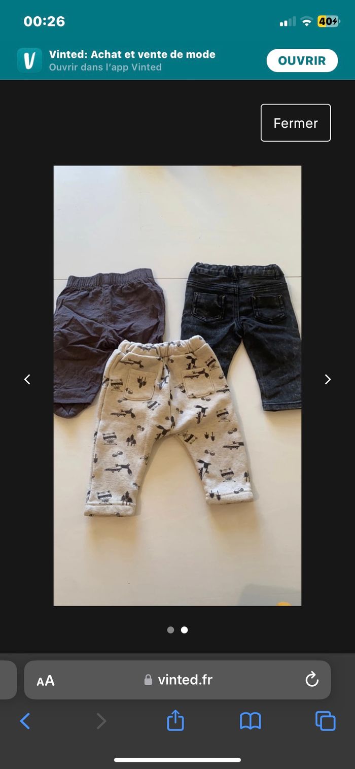 pantalon taille 6mois très bon état marque kiabi le gris avec l’es motif est epais