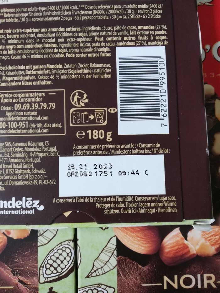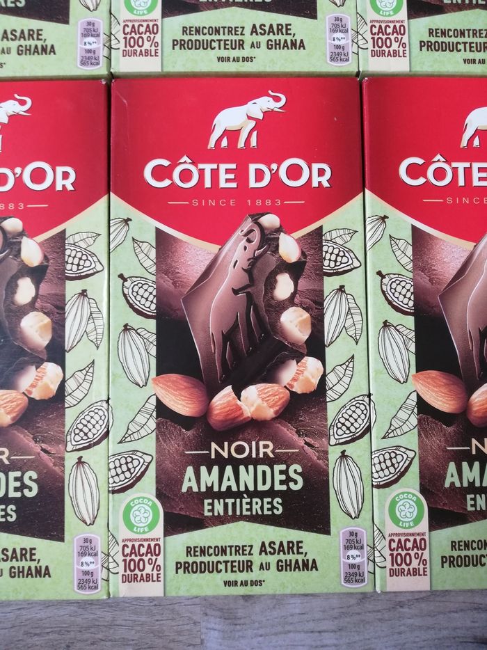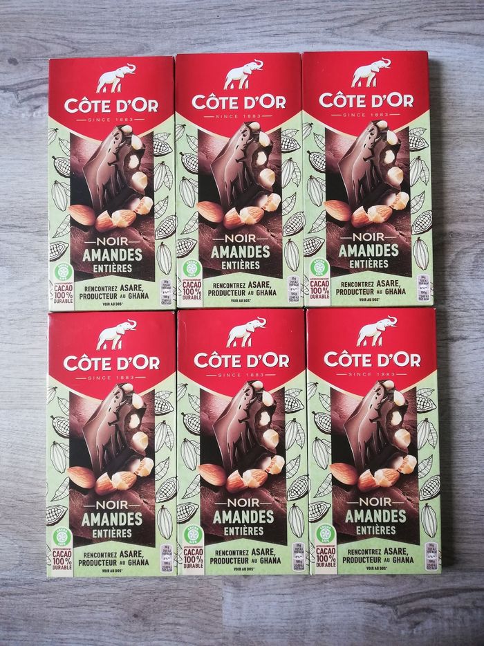 Vend un lot de 6 tablettes côte d'or noir amandes