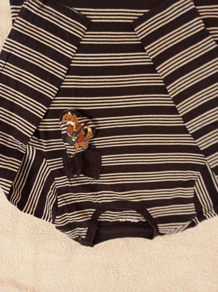Polo pour garçon de couleur blanc et noir à rayures blanches petite poche avec petit pendentif voir photos je sais pas ce que c'est c'est un petit un petit truc pour les garçons je sais pas taille 3 ans 94 cm avec bouton pression sur l'épaule voir photos super marrant petit motif sur la poche