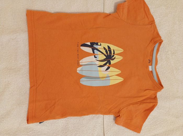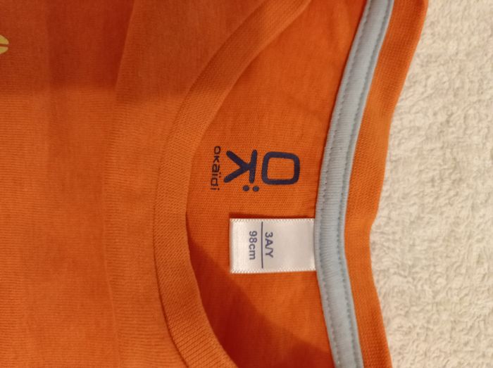 Polo orange avec motif voir photos marque Okaïdi taille 3 ans 98 cm polo avec motif voir photos