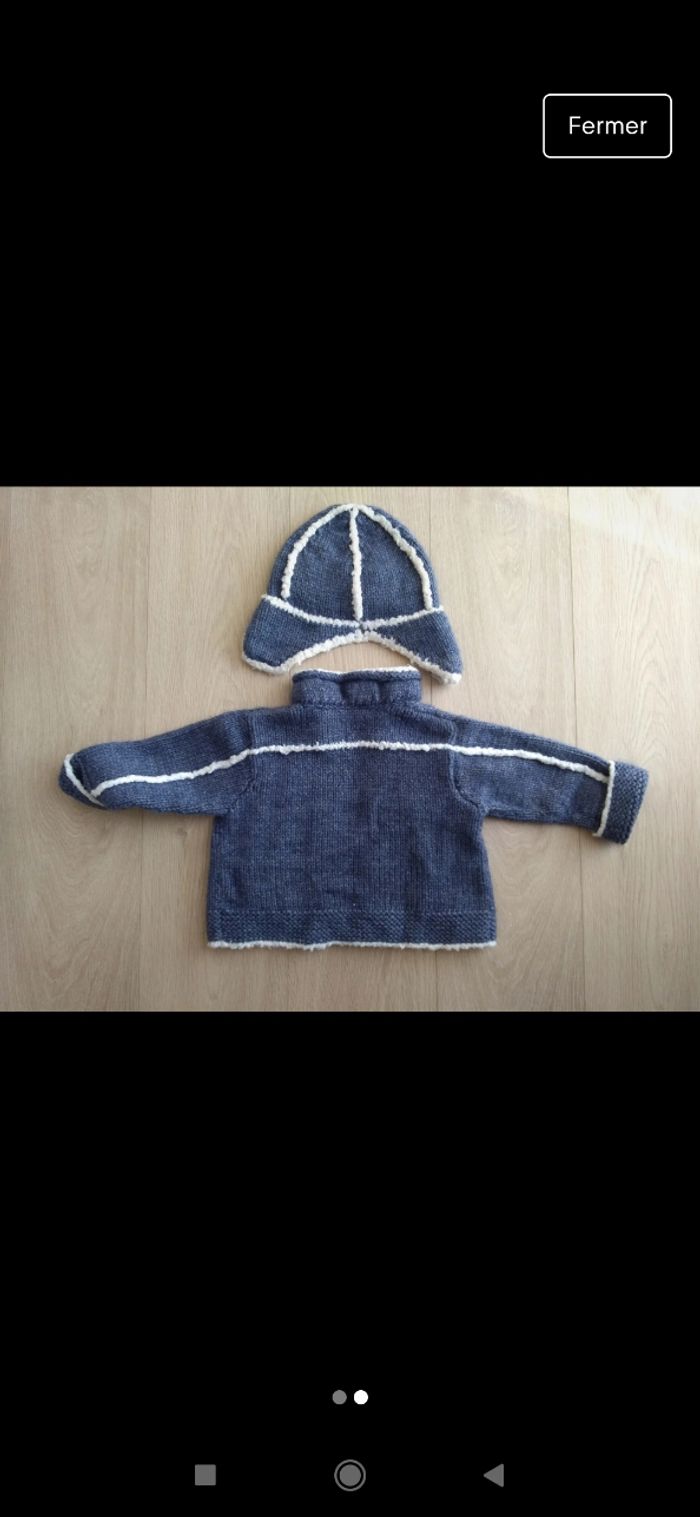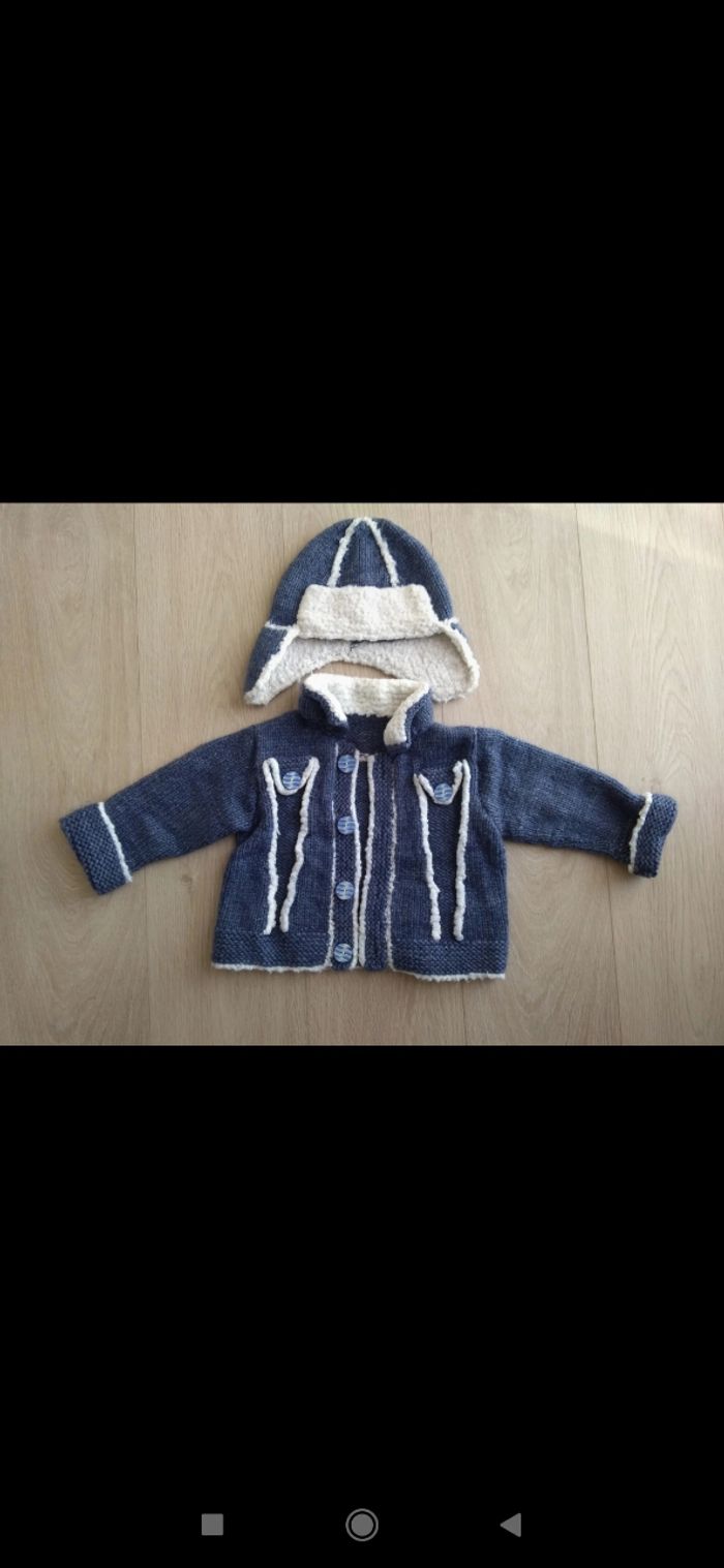 Manteau et bonnet aviateur laine tricotés 12 mois