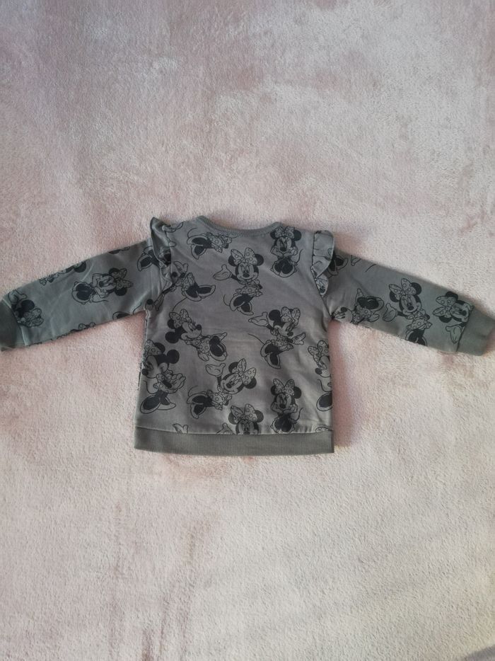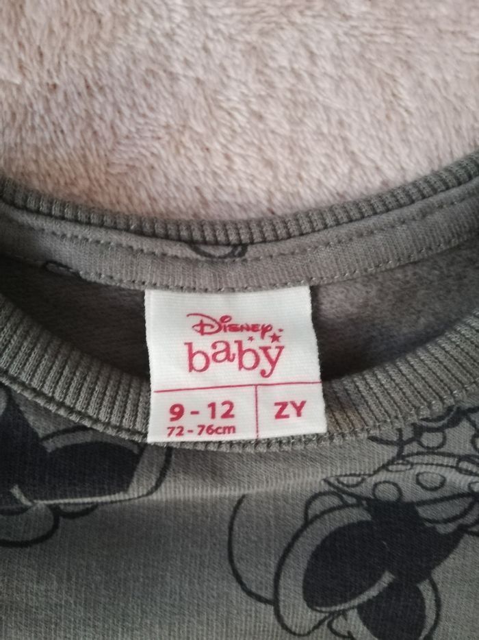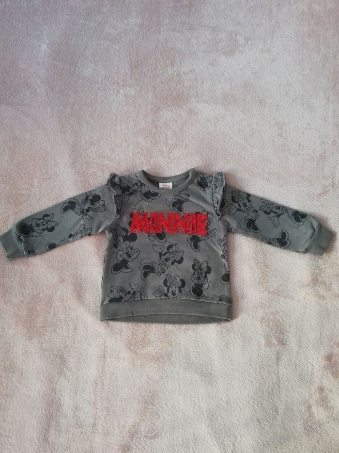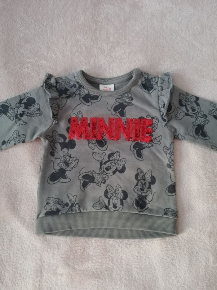 Pull Minnie. Couleur gris avec dessin Minnie sur le devant, le dos et les manches. 2 pressions sur l'épaule. Intérieur polaire. Taille 9/12 mois. 72-76 cm.
