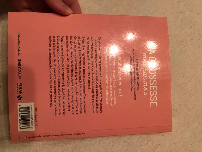 Bonjour Je vends ce livre qui m’a été très utile durant ma grossesse. Il y a pleins d’infos super intéressantes Ça permet de suivre l’évolution de la grossesse