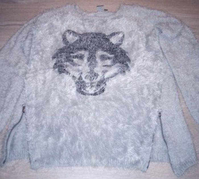 Pulll tête de l oup laine poilue pouvant s'ouvrir en bas