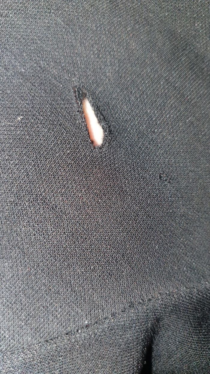 Robe très épaisse , bien chaude pour l'hiver. Un trou à la manche fait lors de l'ouverture du paquet . Sinon parfait état.