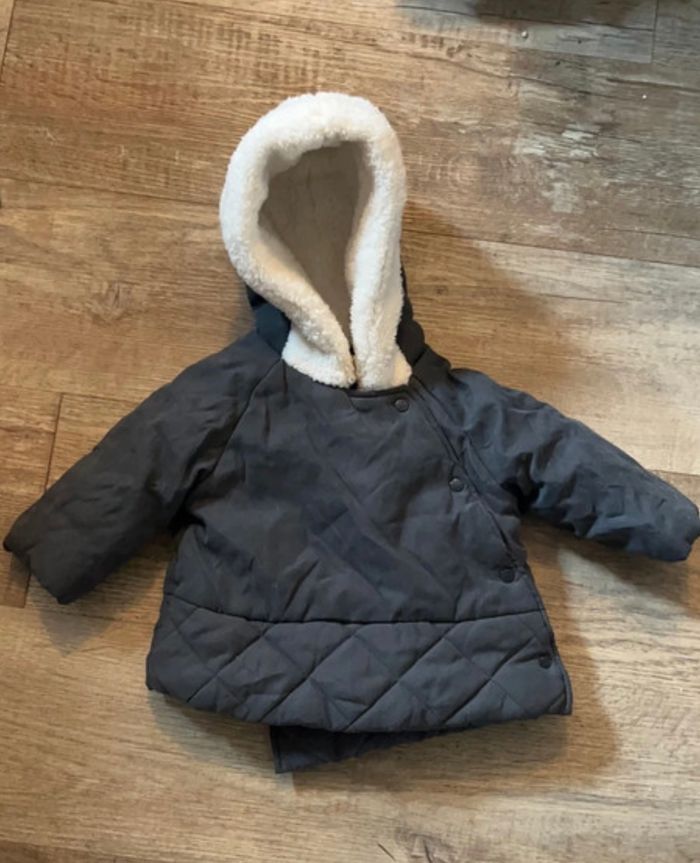 Manteau chaud, gris avec boutons sur le côté. Marque : La redoute Taille : 6 mois Très bon état