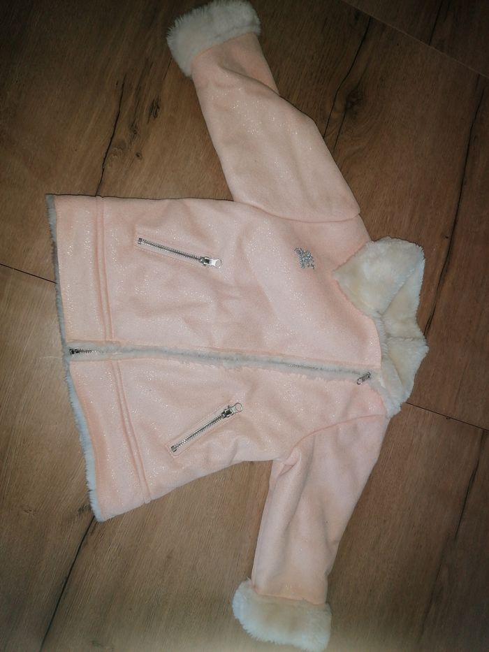 Manteau rose fourré. Deux poches à l'avant. 12 mois Lulu Castagnette Très bon état