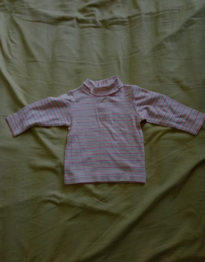 Vends tee-shirt manches longues blanc rayée jaune/rose et vert en excellent état jamais port