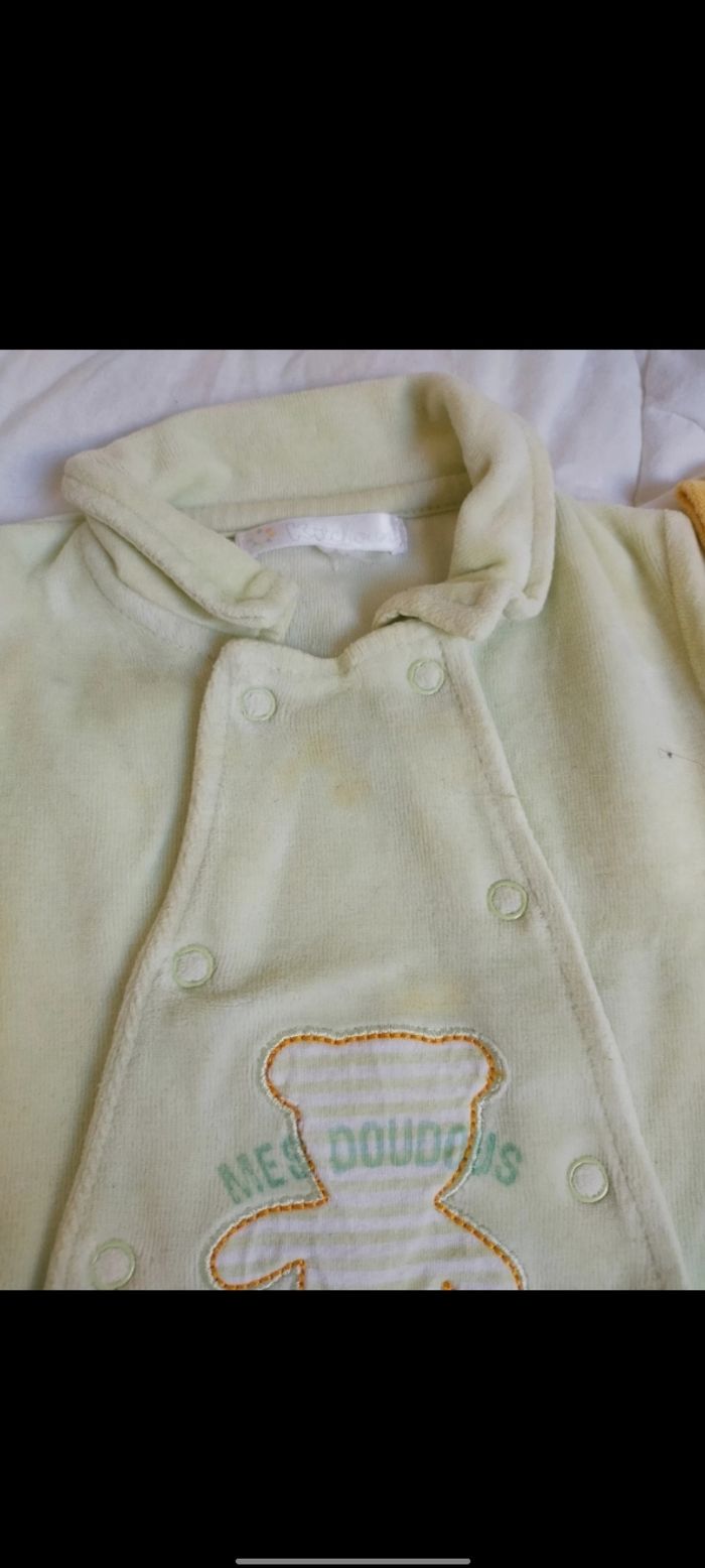 Lot de 4 pyjamas Naissance - 1 mois En bon état (seu le pyjama vert à des taches) Je vends de nombreux vêtements enfant. Comme je suis nouvelle sur l'appli, je n'ai encore tout posté ici donc n'hésitez pas regarder mon compte vinthee : fabie91470