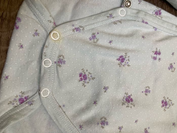 Tache sur un des 2 body. Voir photo. L’autre en très bon état. Couleur vert pâle