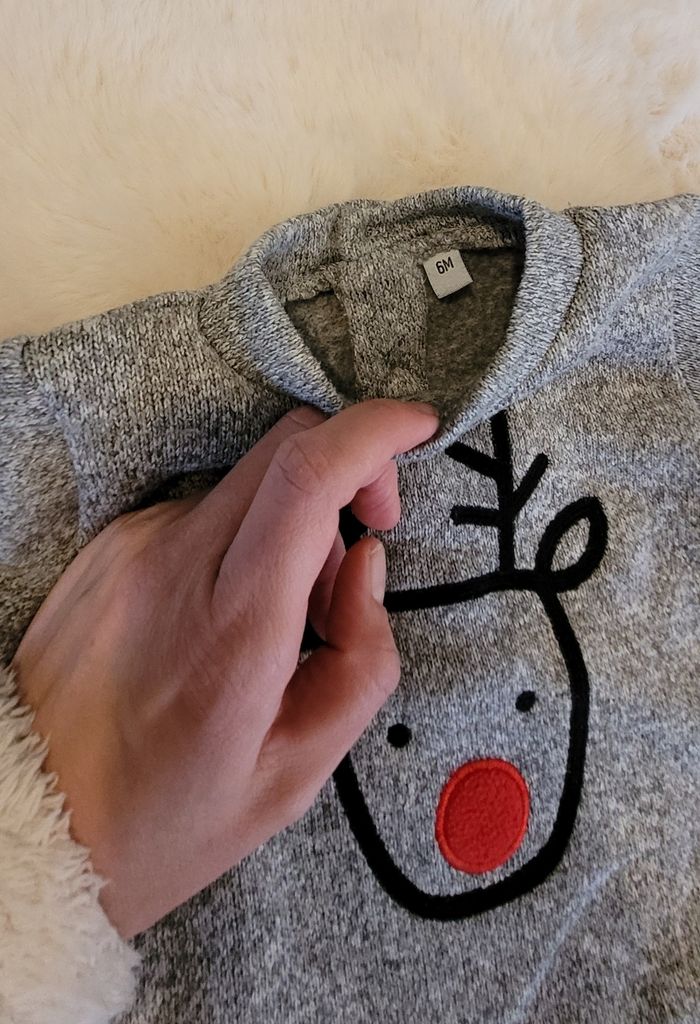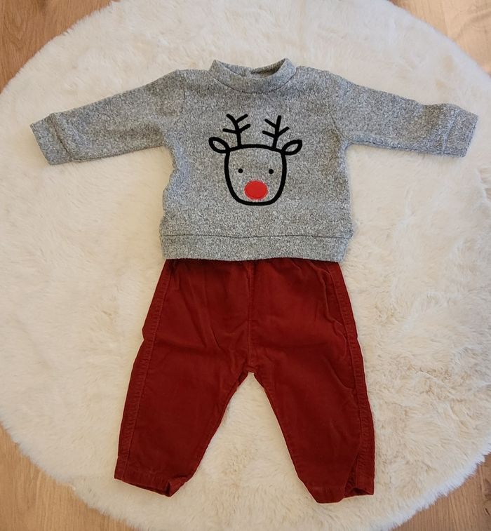 Ensemble pull et pantalon taille 6 mois, sans marque. En parfait état.