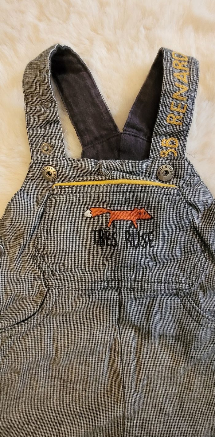 Salopette Sucre d'Orge en taille 6 mois . En parfait état. Motif renard sur le devant