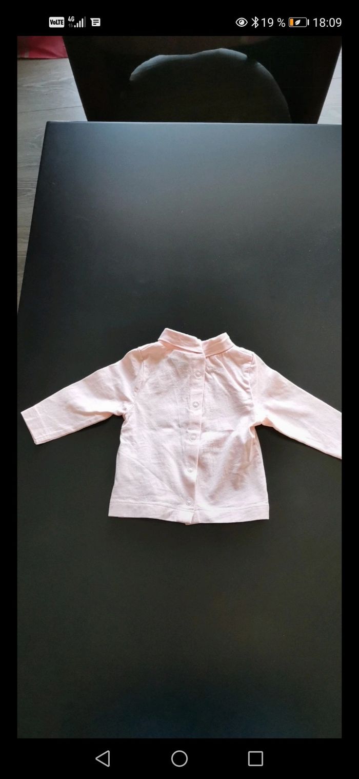 Haut col montant rose écrit parfaite 3 mois très bon état