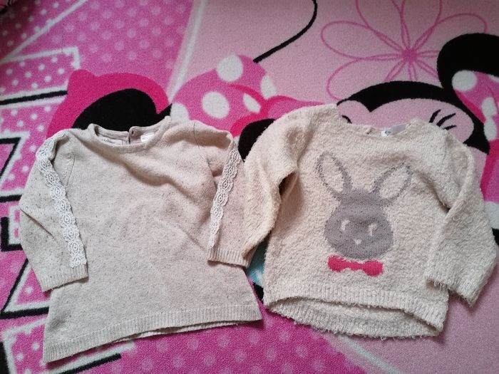 2 pull taille 18-24 mois. Un Zara (un peu bouloché mais très jolie details sur les manches) et un La Redoute.