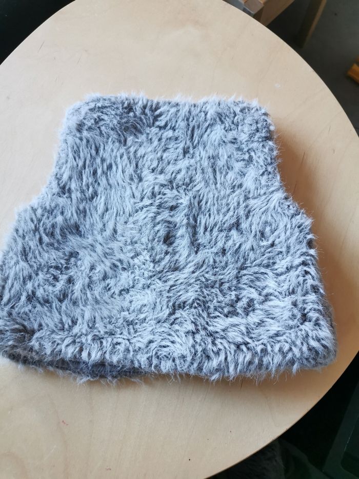 Gilet sans manche en fausse fourrure gris avec son noeud chic. C'est une taille 12 mois, il est en très bon état.
