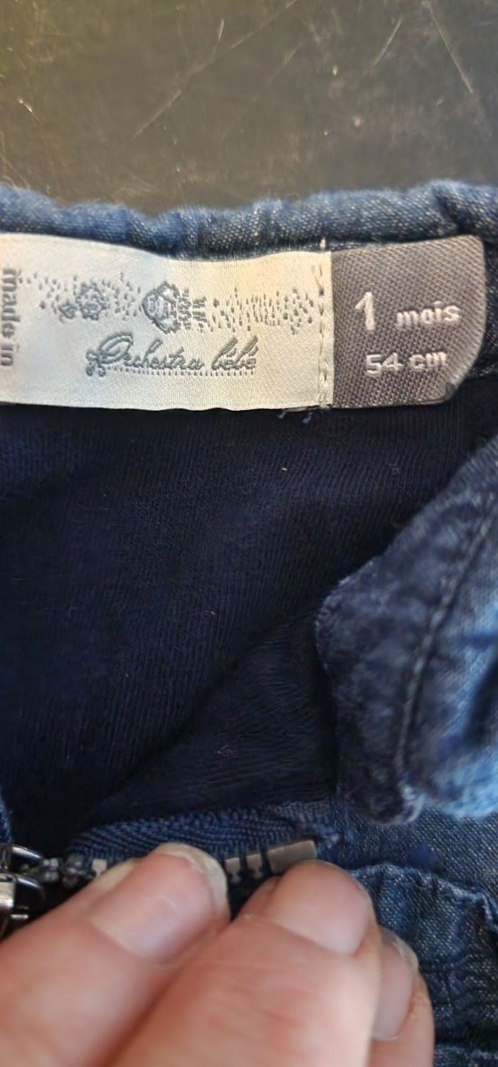 Jolie salopette bleu de marque orchestra et de taille 1mois très bonne état