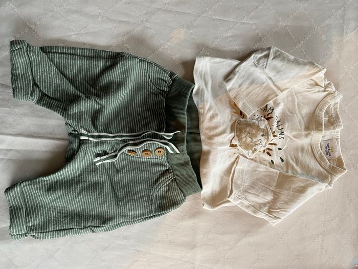Bon état ensemble tape à l’œil kaki beige 1 mois