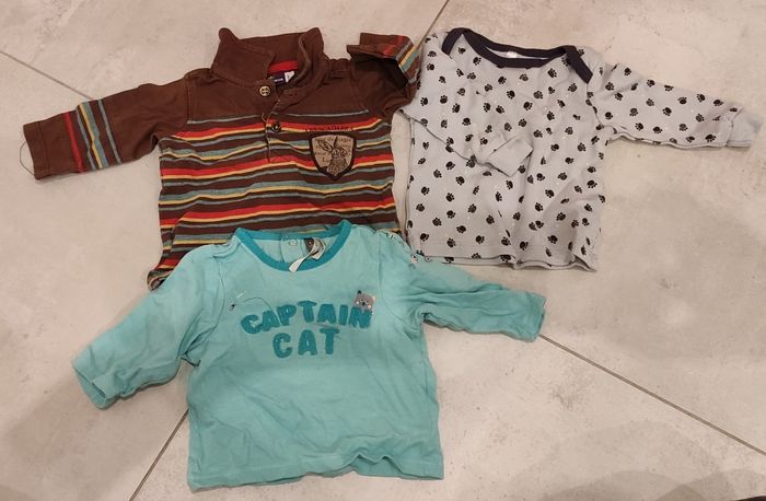 Hauts en taille 1 mois. Pantalon en taille 1 mois. Aucune tâche ni trou. Bon état.
