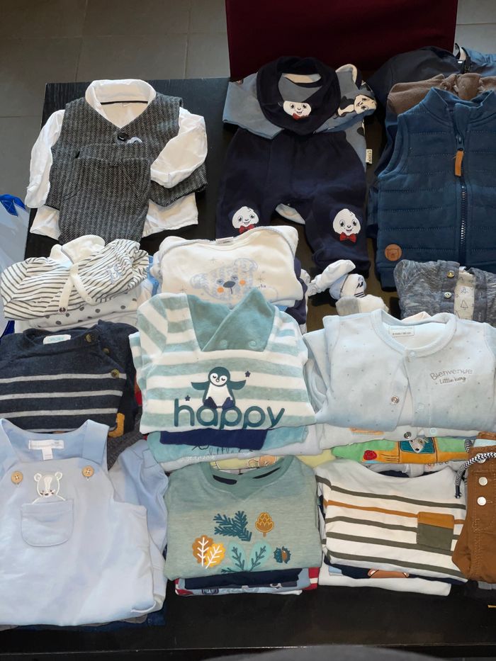Alors voici ce que le lot 3 mois contient . 14 Body 14 Pyjamas 7 pantalons 5 pulls 12 TEE shirt 1 tenue costard 1 veste polaire 1 combinaison 4 salopettes 3 paires de chaussettes 1 doudoune sans manches 1 Manteau K-WAY. 1 paire de chaussons 1 paire de chaussures.