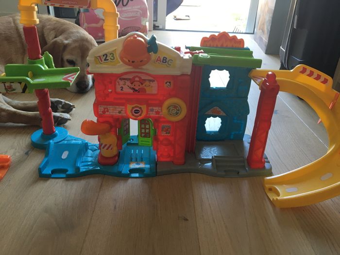 La maxi caserne 10 euros avec camion pompiers Le garage 10 euros avec une voiture Le kit route supplémentaire 10 euros Chaque voiture 3 euros