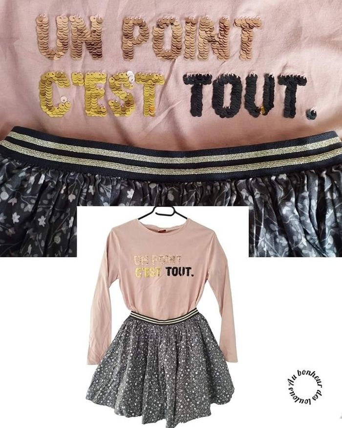 12 ans ensemble teeshirt tape a l oeil et jupe Okaïdi