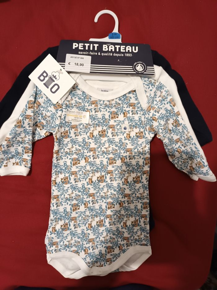 Lot 3 Bodies petit bateau 3 mois bio - photo numéro 1