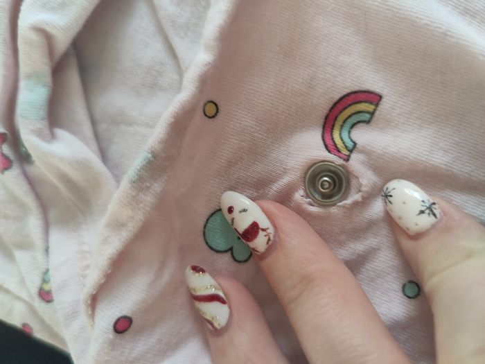Pyjama léger, une pression est légèrement fatiguée mais cela n'empêche pas la bonne utilisation du pyjama