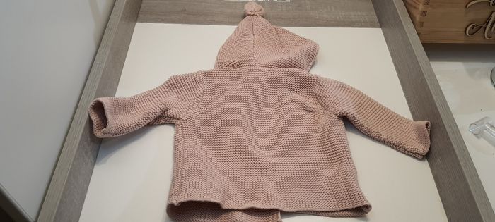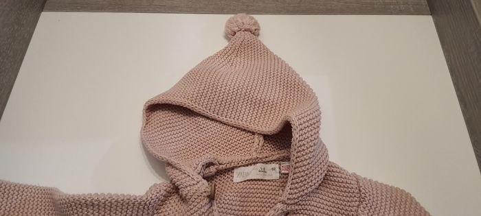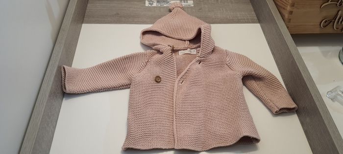 Gilet rose pâle avec capuche, marque Zara. Taille 62 cm, très bon état, peu porté.