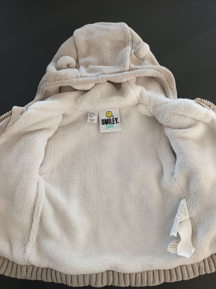 Veste polaire 1 mois, couleurs grise claire avec dessin de smiley Neuve jamais portée