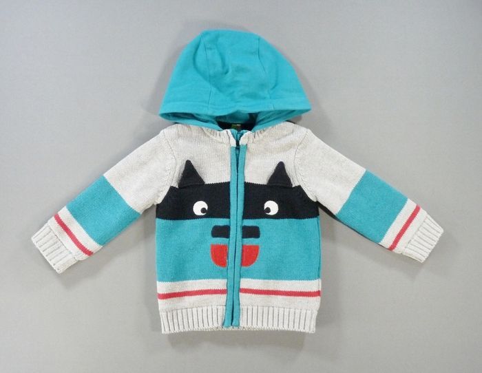 Gilet capuche tricot sherpa vert gris ORCHESTRA 9 mois 71 cm garçon