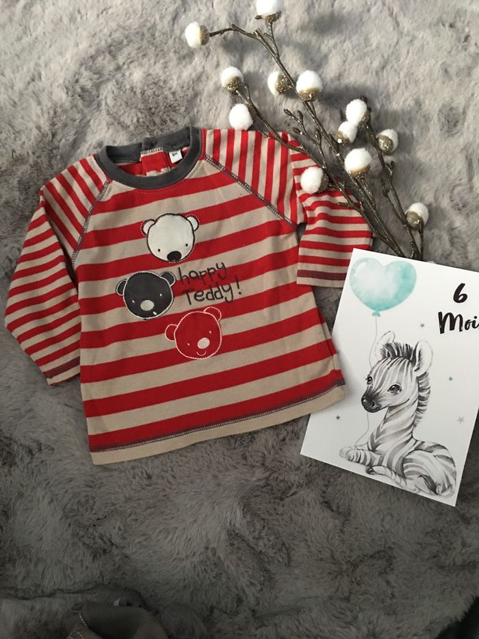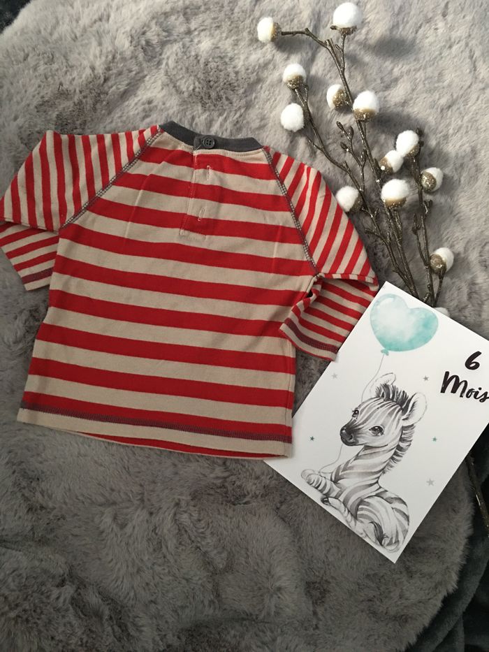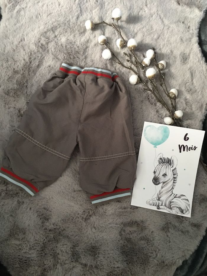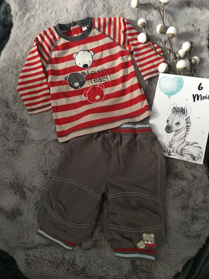 Ensemble 6 mois Pull fin rouge marron et beige Pantalon ample/bouffant marron Sans marque