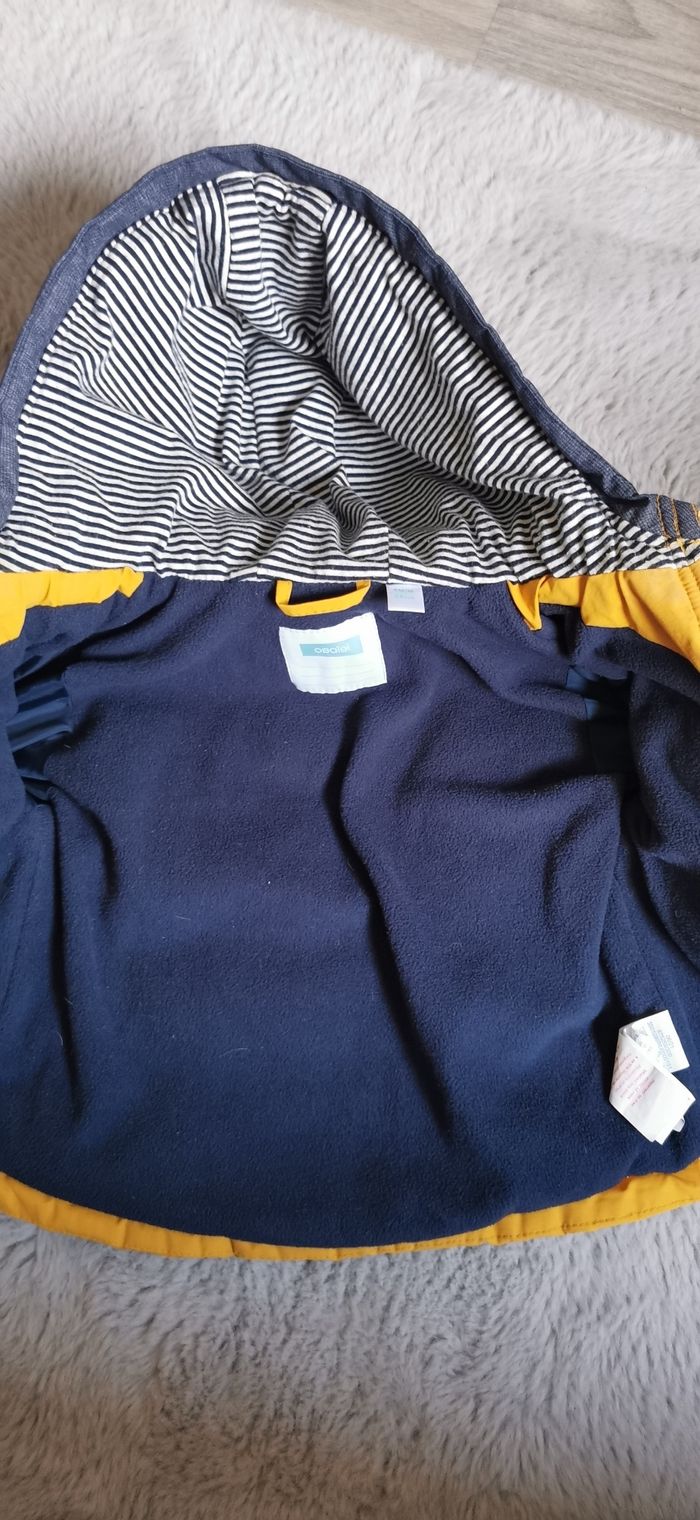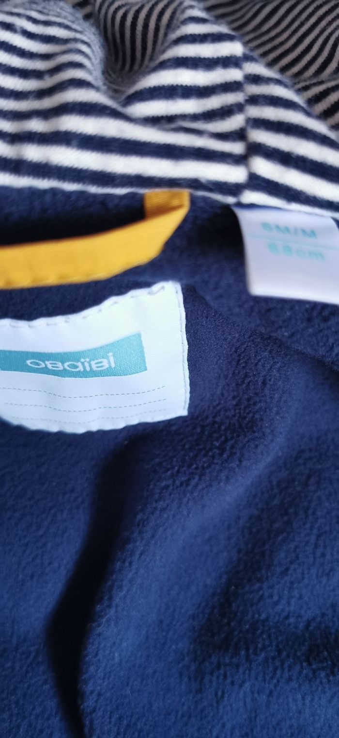 Veste hiver 6 mois Jaune Manches et intérieur bleu marine Marque obaïbi