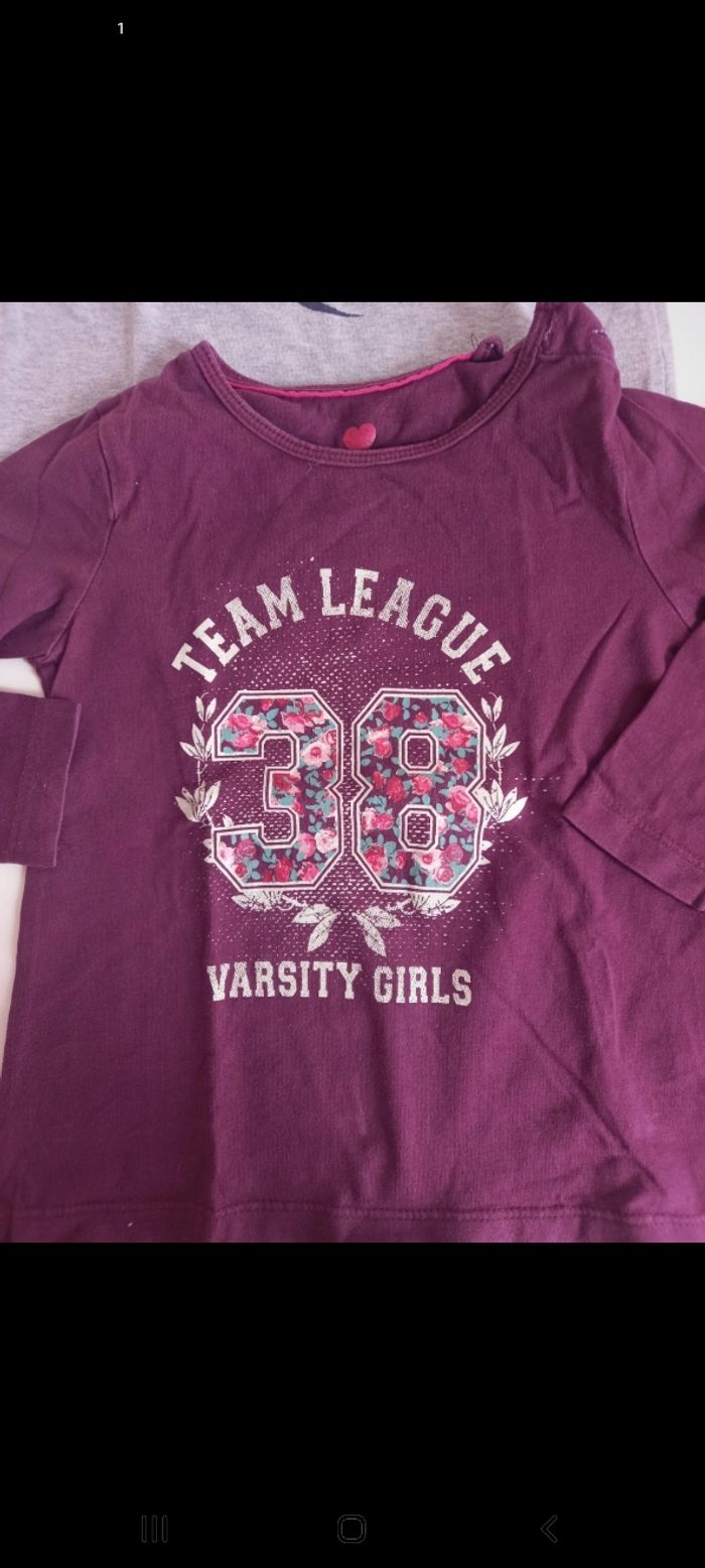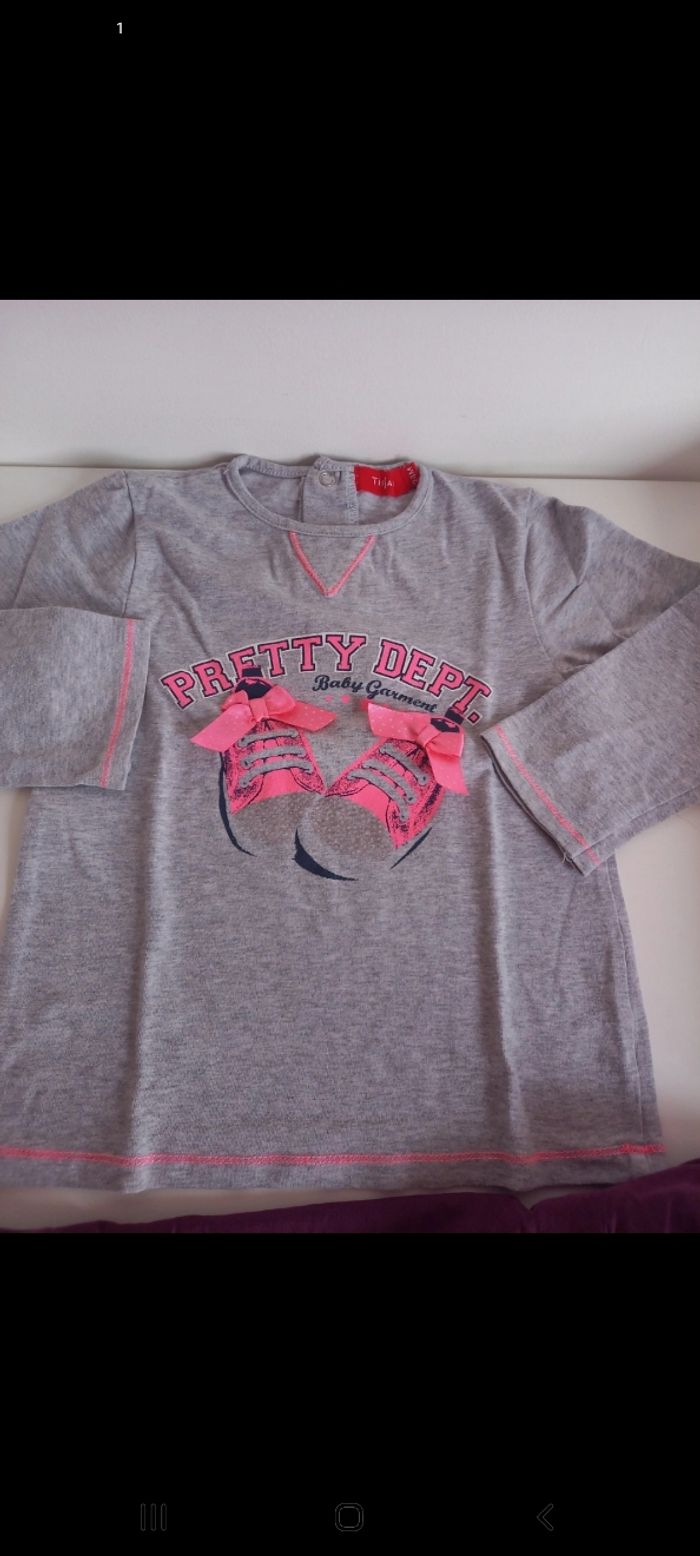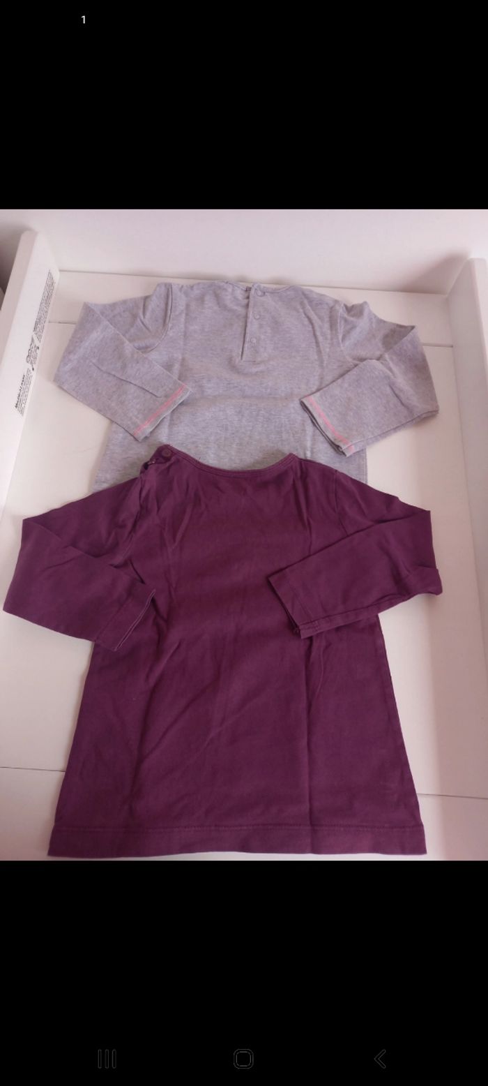 Lot de 2 t-shirts manches longues pour fille Un gris de marque Tissaia taille 24 mois Un violet de marque lupilu taille 86/92cm ( taché devant à enlever au détachant)