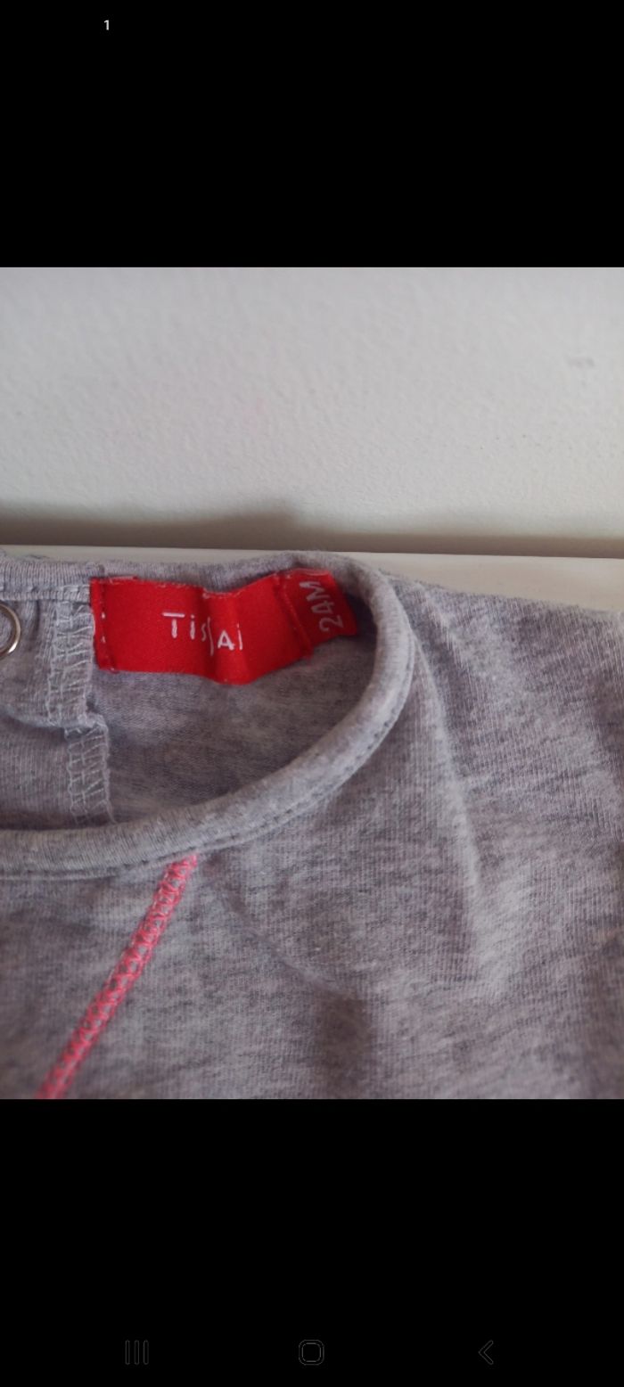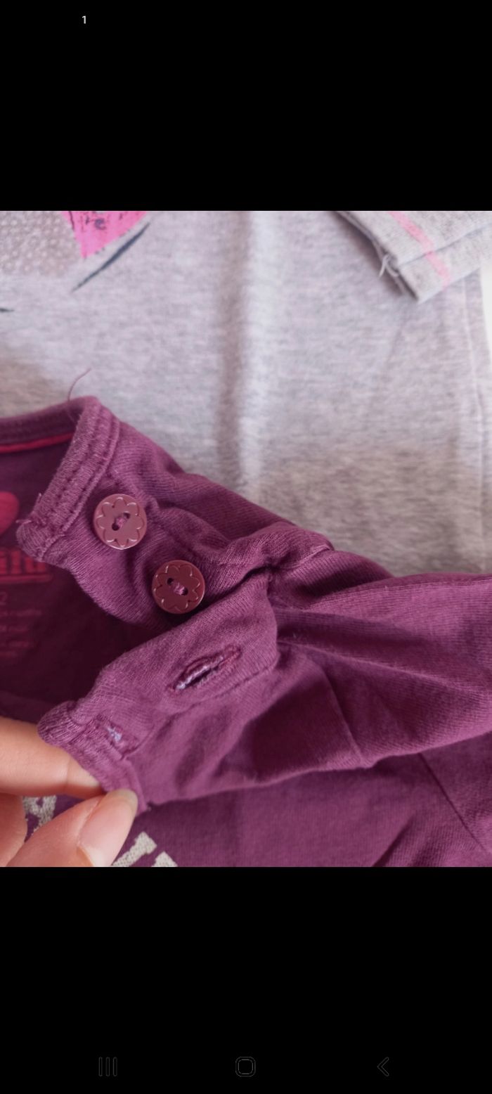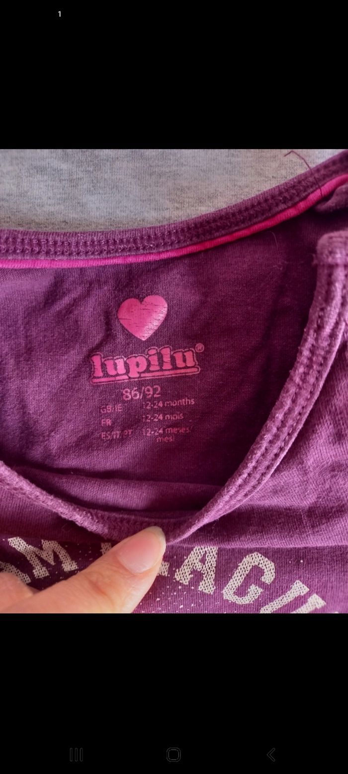 Lot de 2 t-shirts manches longues pour fille Un gris de marque Tissaia taille 24 mois Un violet de marque lupilu taille 86/92cm ( taché devant à enlever au détachant)