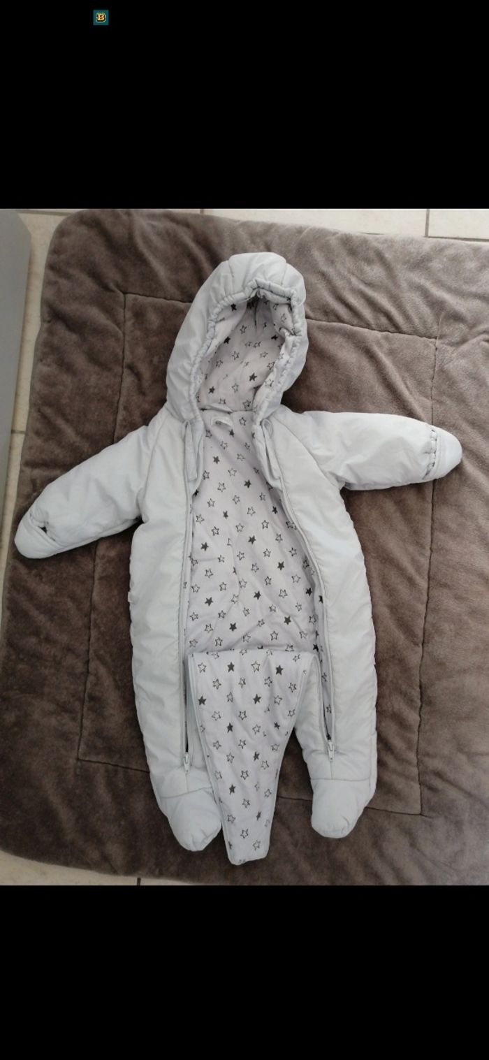 Combinaison chaude et imperméable (intérieur doux en coton) pour nouveau-né, taille 0-3 mois. Colori mixte gris clair avec étoiles à l'intérieur. Marque Absorba. Neuve sans emballage. Valeur à l'achat 80e.