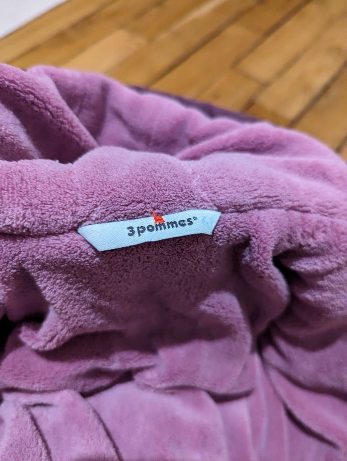 Manteau de seconde main, marque "3 Pommes", a bien servi mais est encore en bon état général. Très chaud, idéal pour la saison actuelle. Taille 3 mois, avec les gants déjà intégrés.