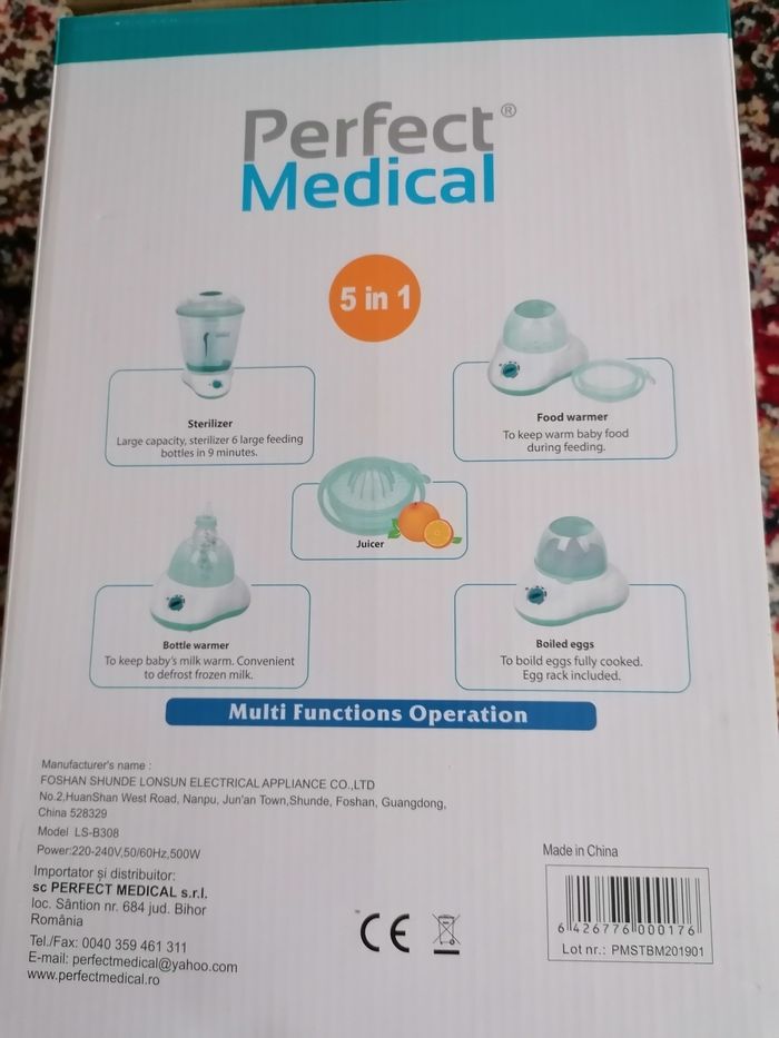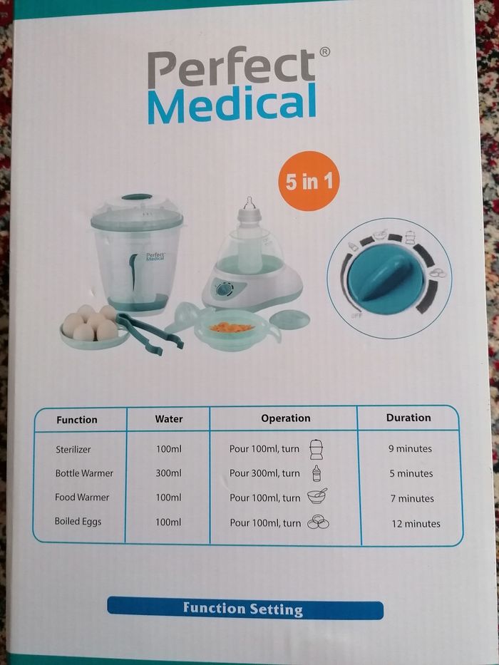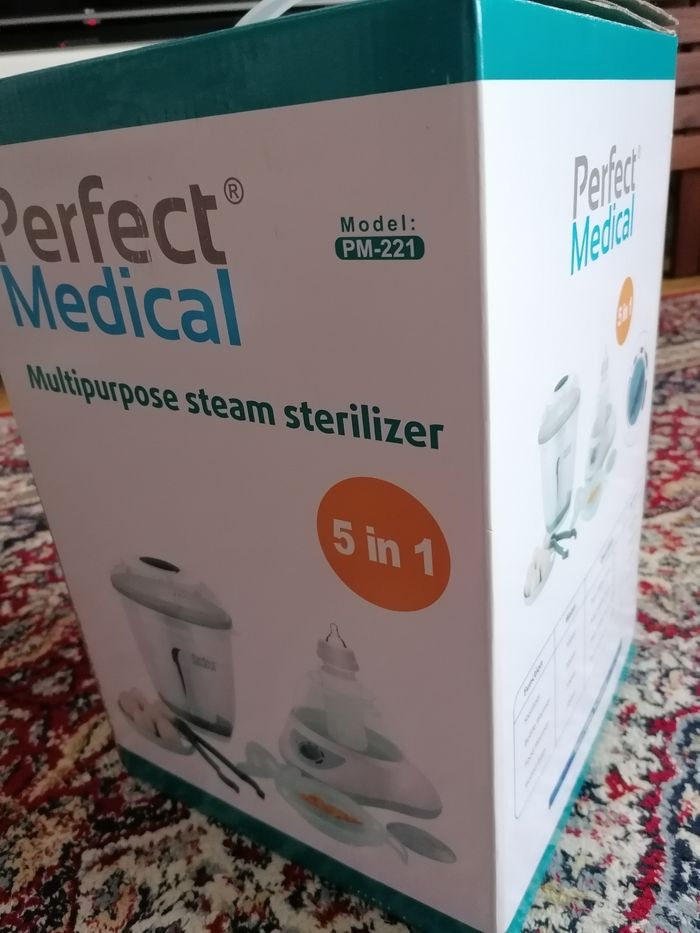 Stérilisateur multi fonctions 5 en 1. État neuf, jamais utilisé, jamais sorti de son emballage d'origine. - stérilisateur biberons - chauffe biberons - chauffe pots nourriture bébé - fonction pour bouillir des ouefs durs - fonction presse jus de fruits