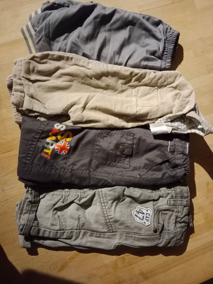 Lot de 3 pantalons de marque Mini Gang, Gémo, Pompette. 1 salopette de marque Jacadi.