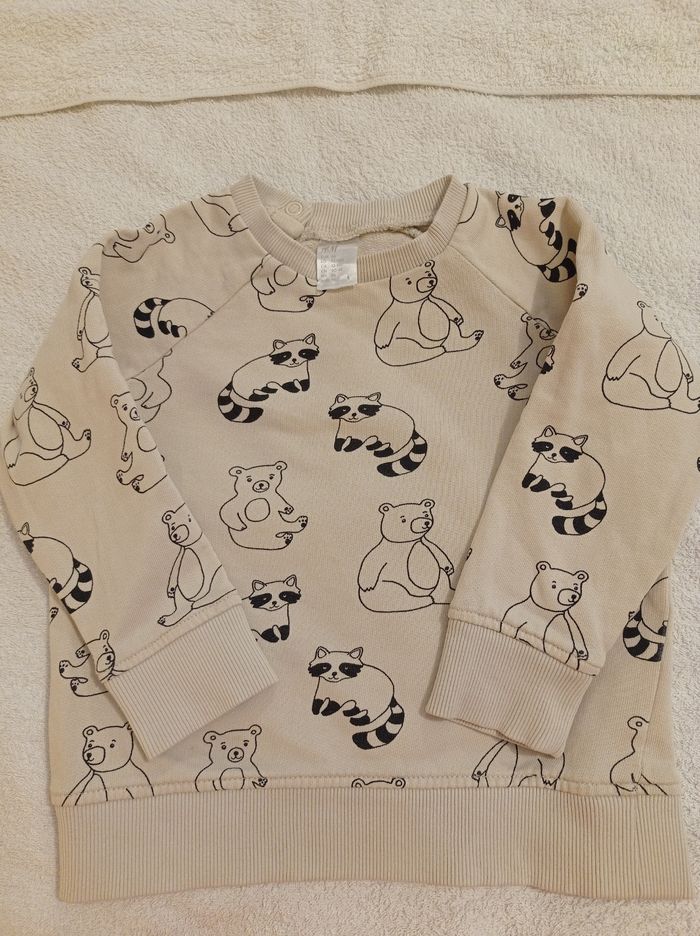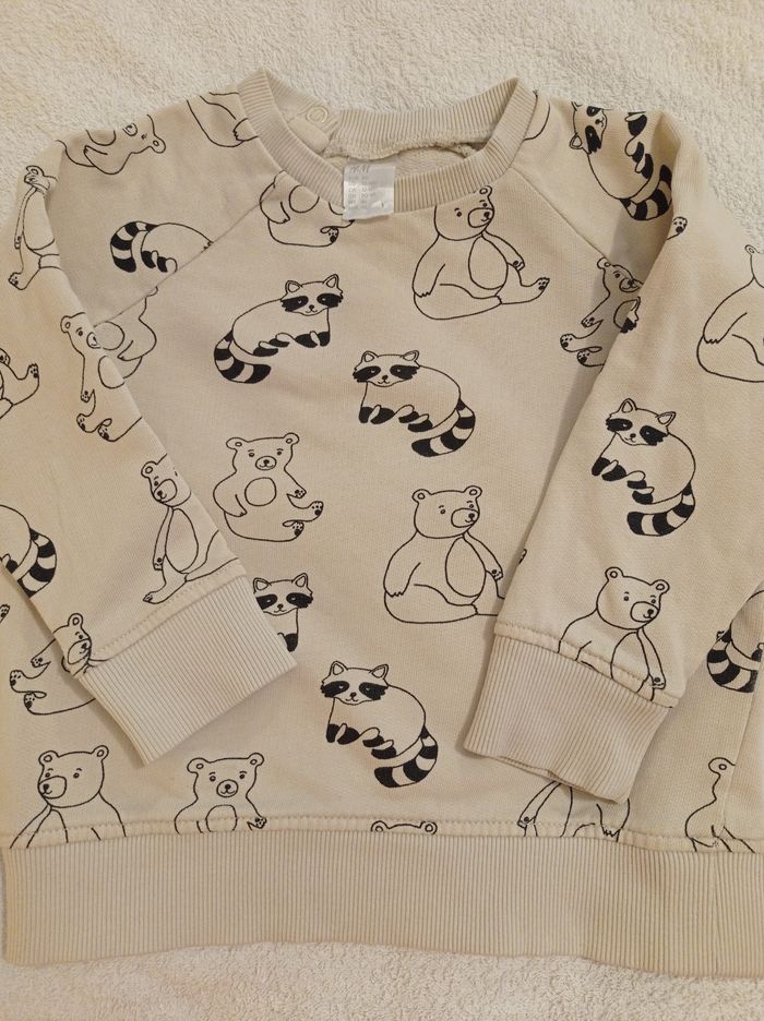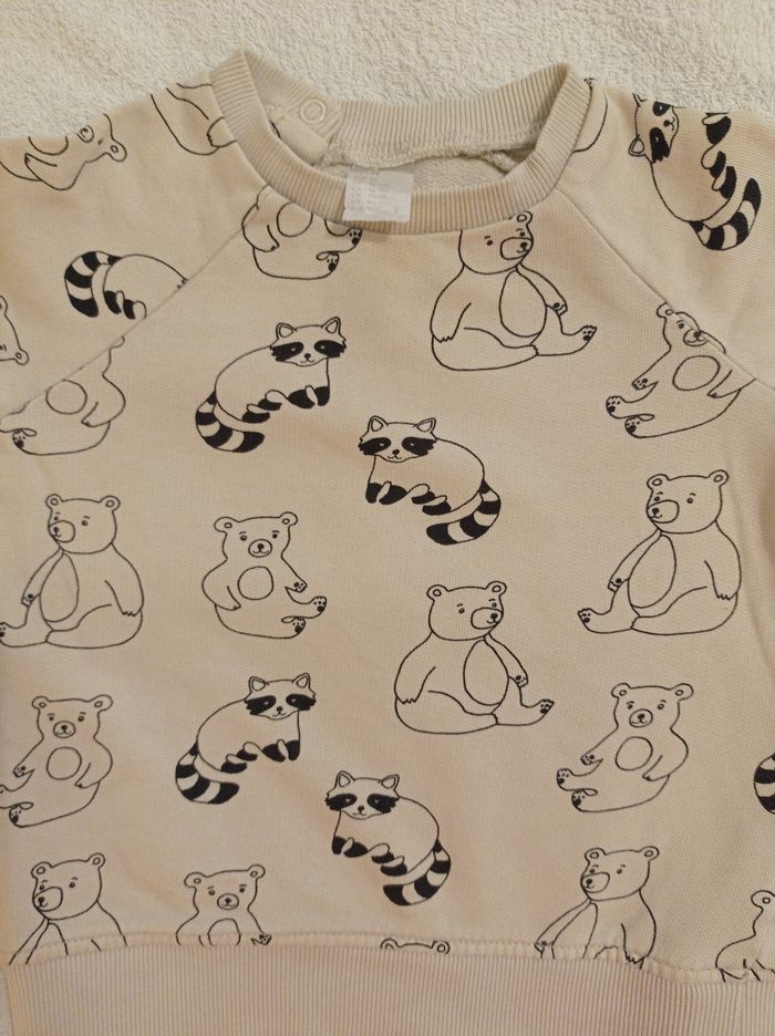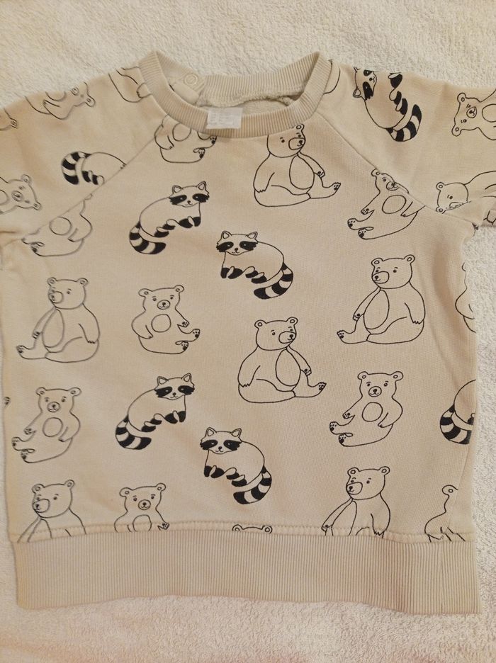 Pull pour garçon crème avec des petits nounours noir et des petits renard pull manches longues avec pression dans le dos très bon état taille 12 mois