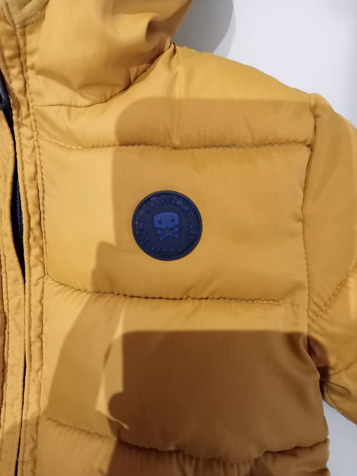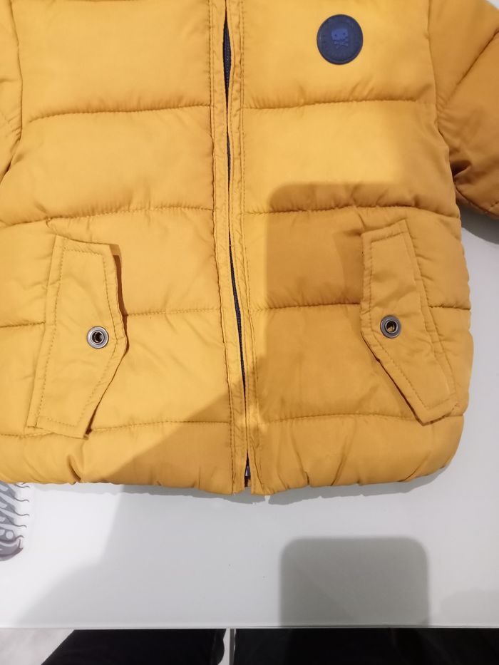 Doudoune Mango jaune 9/12mois. Bon état car 2 petits accros sur la capuche (voir photo) . #doudounemangogarcon
