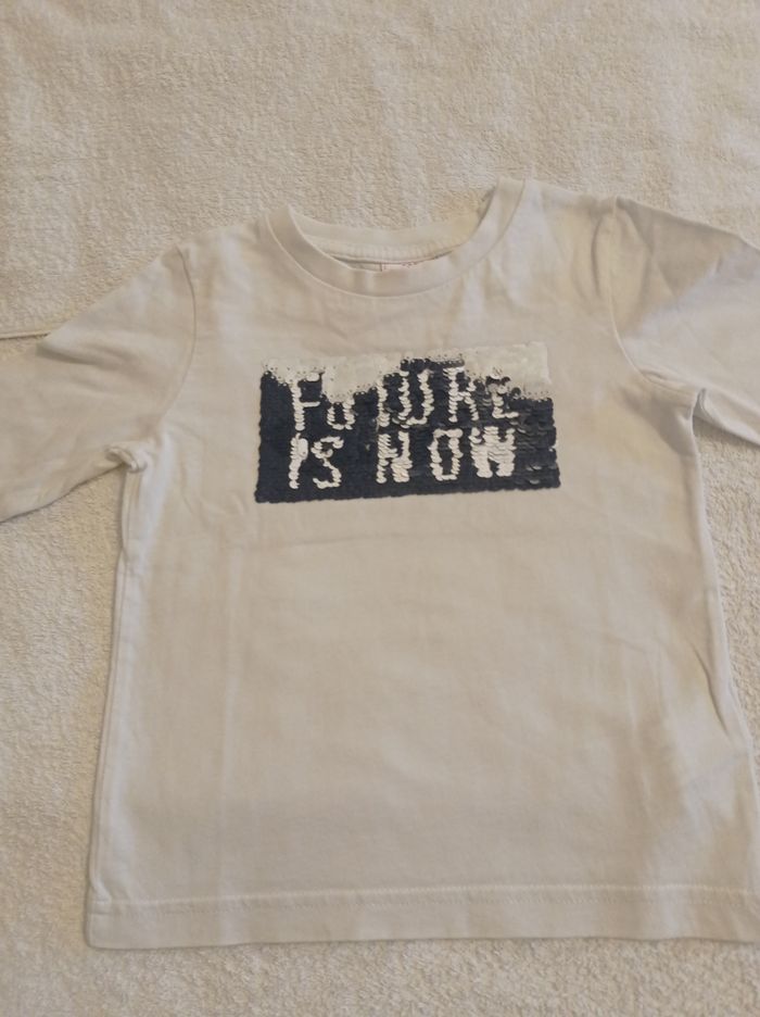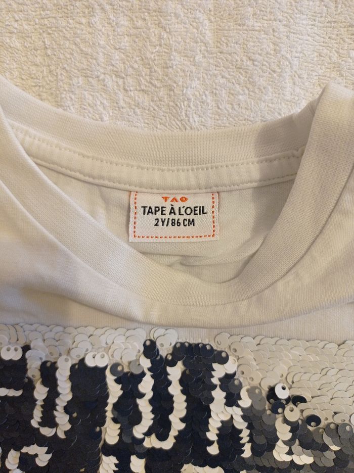 Marque tape à l'oeil blanc inscription bleu 24 mois 86 cm manches longues couleur blanc et bleu voir photos