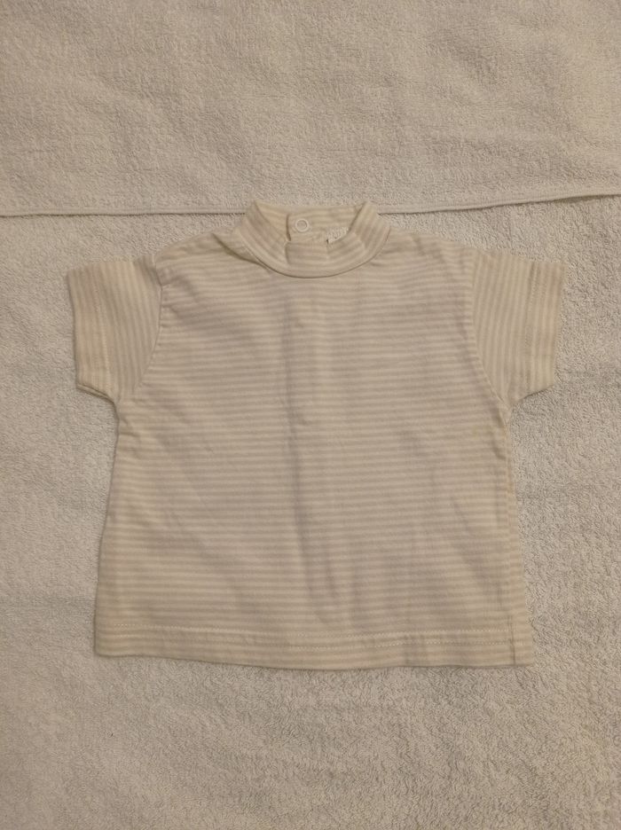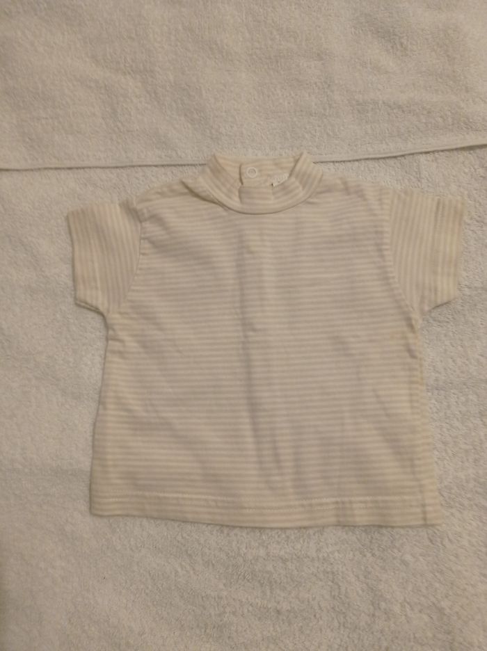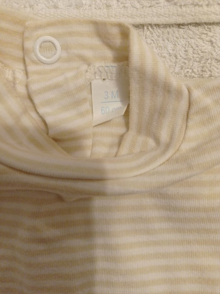 Pull avec bouton dans le dos taille 3 mois 60 cm blanc à rayures marron clair