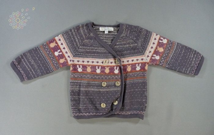 Gilet cardigan tricot gris multicolore jacquard Kitchoun 12 mois 74 cm fille - photo numéro 1