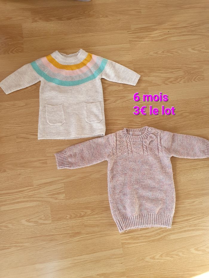 Lot robes en laine Une blanche arc en ciel Une rose pailleté Taille 6 mois Tres bon état 3€ le lot