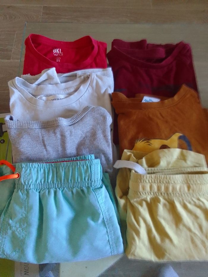 Vend un lot 6 ans Il y a 2 Short 3 t-shirt 2 t-shirt a manches longue 1 haut roi lion 1 jogging Je vend le lot 5euro