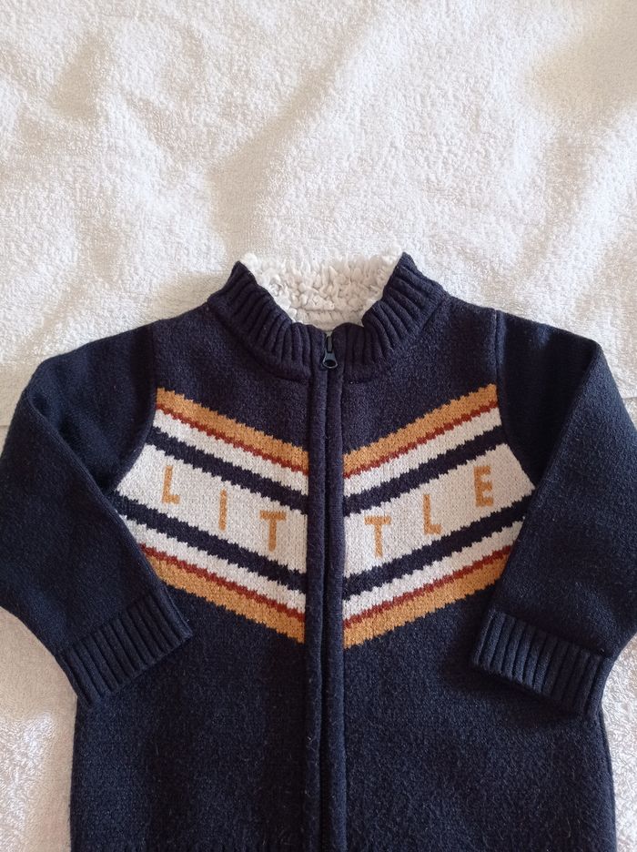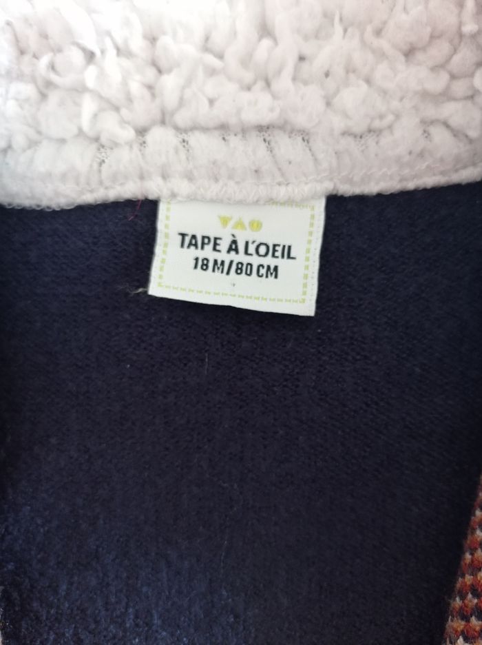 Veste en laine pour garçon bleu très chaude avec motif devant à voir photos fermeture marque tape à l'oeil 18 mois 80 cm motif devant voir photos