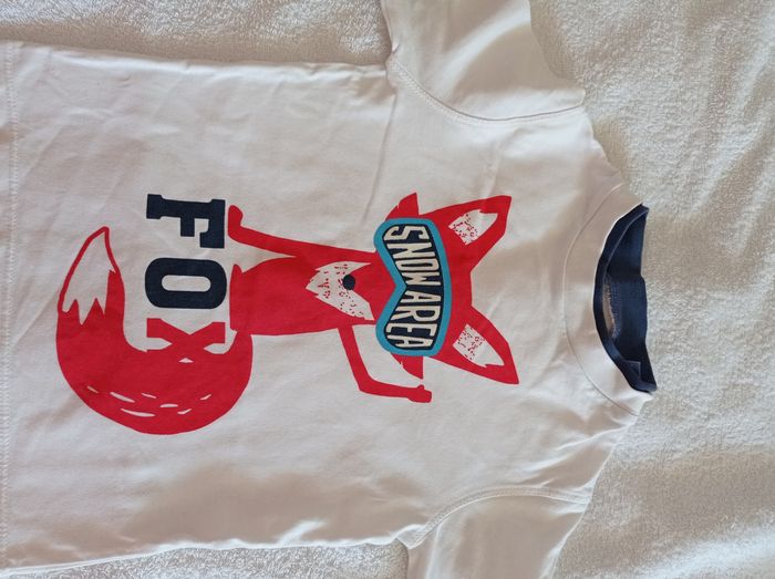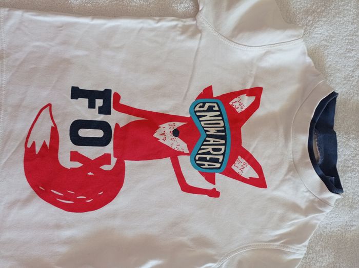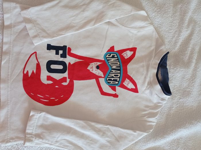 Pull pour garçon blanc marque Okaïdi taille 4 ans 102 cm double colle bleu avec motif renard voir photos - photo numéro 7