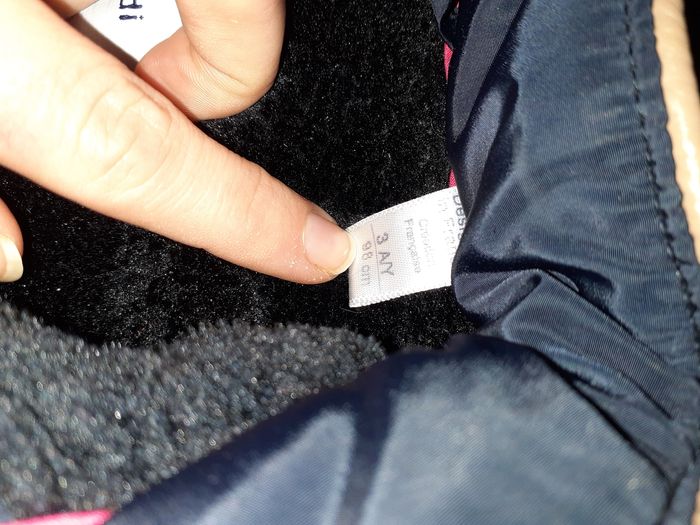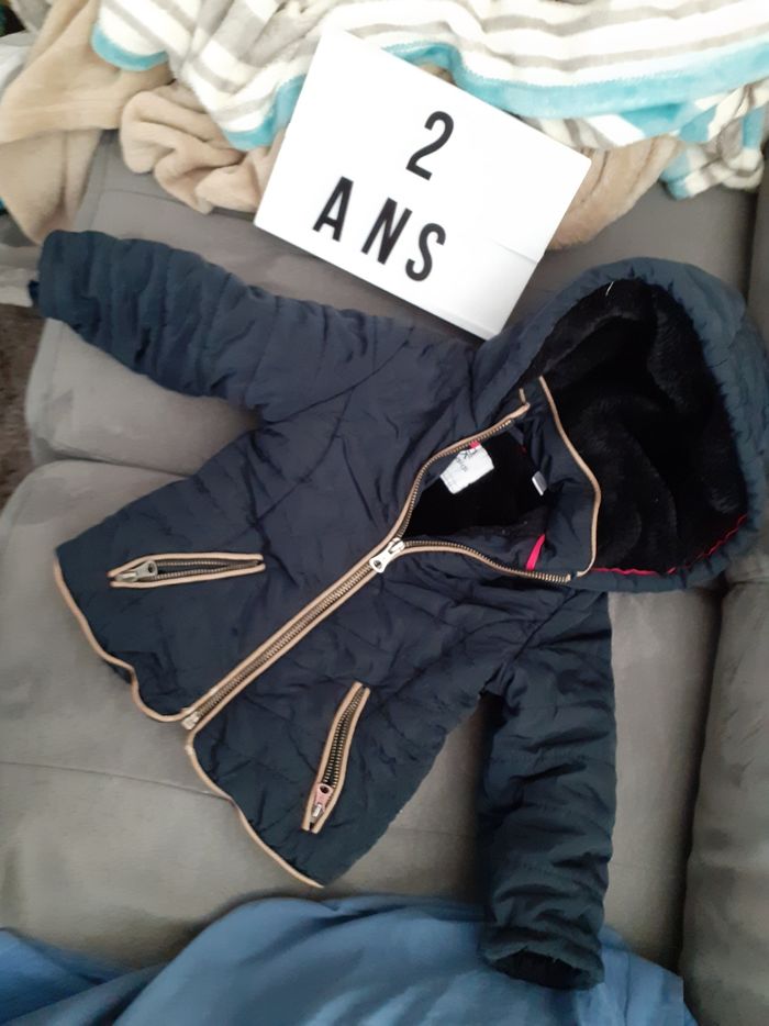 Indiquer 3 ans mais les manches on étaient raccourci car manches trop longues par rapport au bas du manteau Voir photo elles mesures 28 cm en partant de l epaule jusqu'àu bout des manches Hesitez pas à faire des lot pour économiser les frais de port Possibilité de remise en main propre