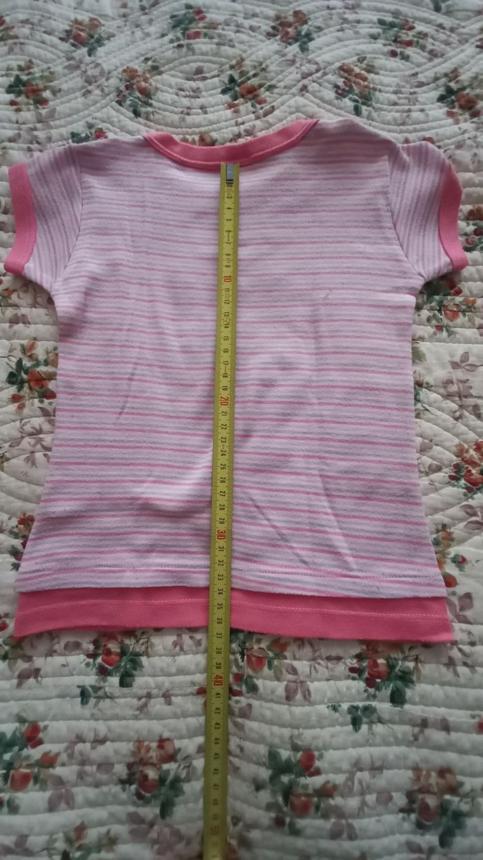 T-shirt manches courtes fille couleur rose. Environ 2/3 ans car étiquette coupée. Largeur d'épaules 26 cms. Longueur 36 cms. Bon état (quelques bouloches)
